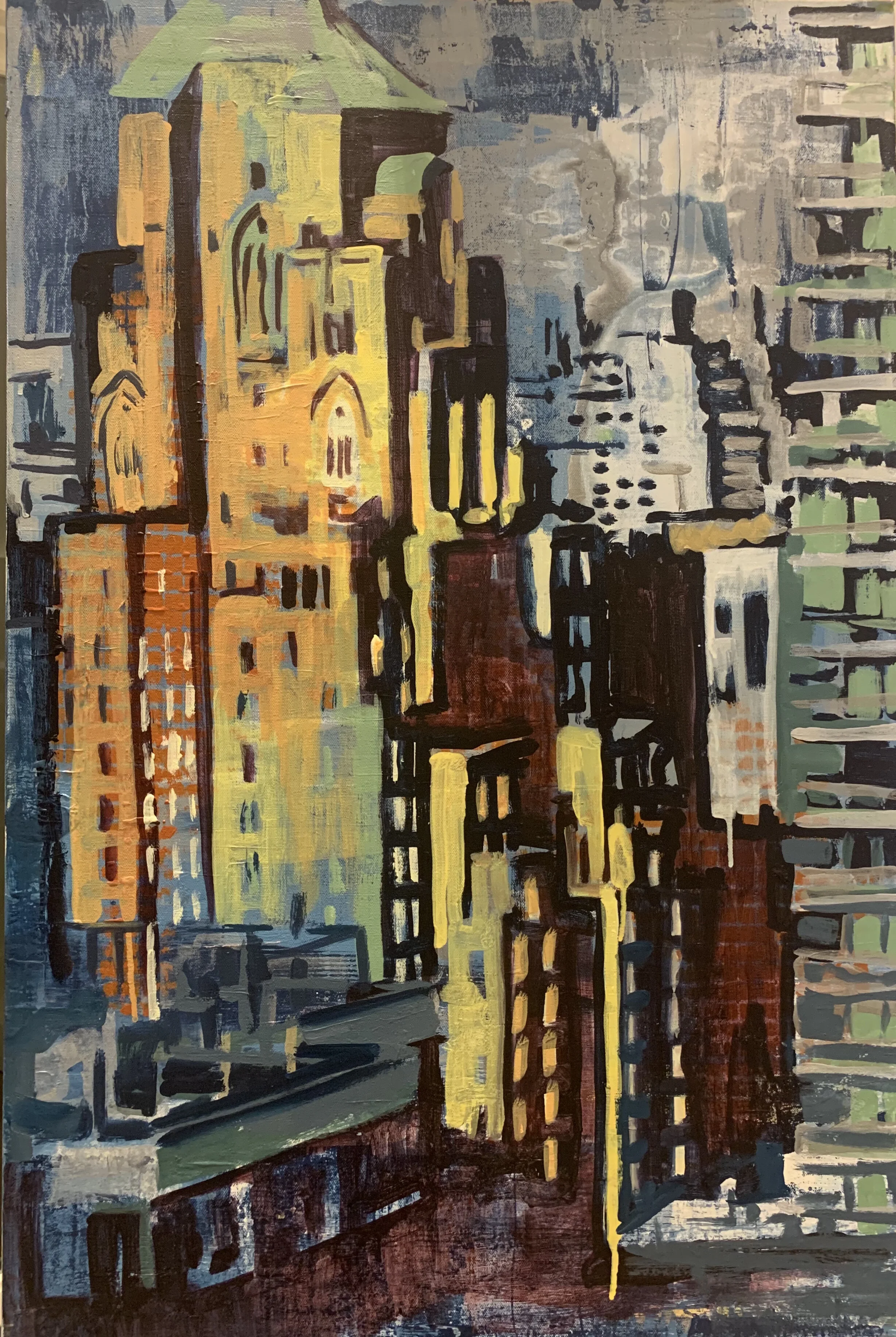 ROOFTOPS - ACRYLIC & OIL ON CANVAS - 24" x 36"